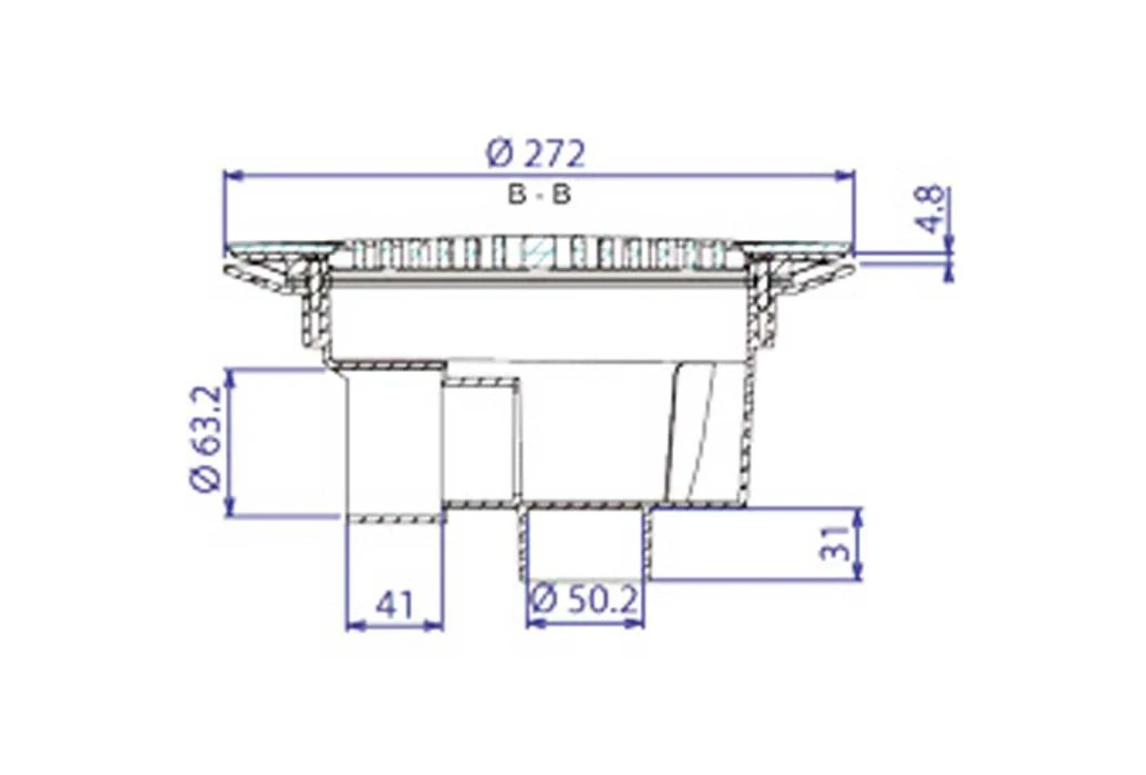 De BMT bodemput is voorzien van een zij- en onderaansluiting voor het verlijmen van Ø50 mm of Ø63 mm PVC buis. Ook kan dit afzuigpunt eventueel in een muur worden gemonteerd.