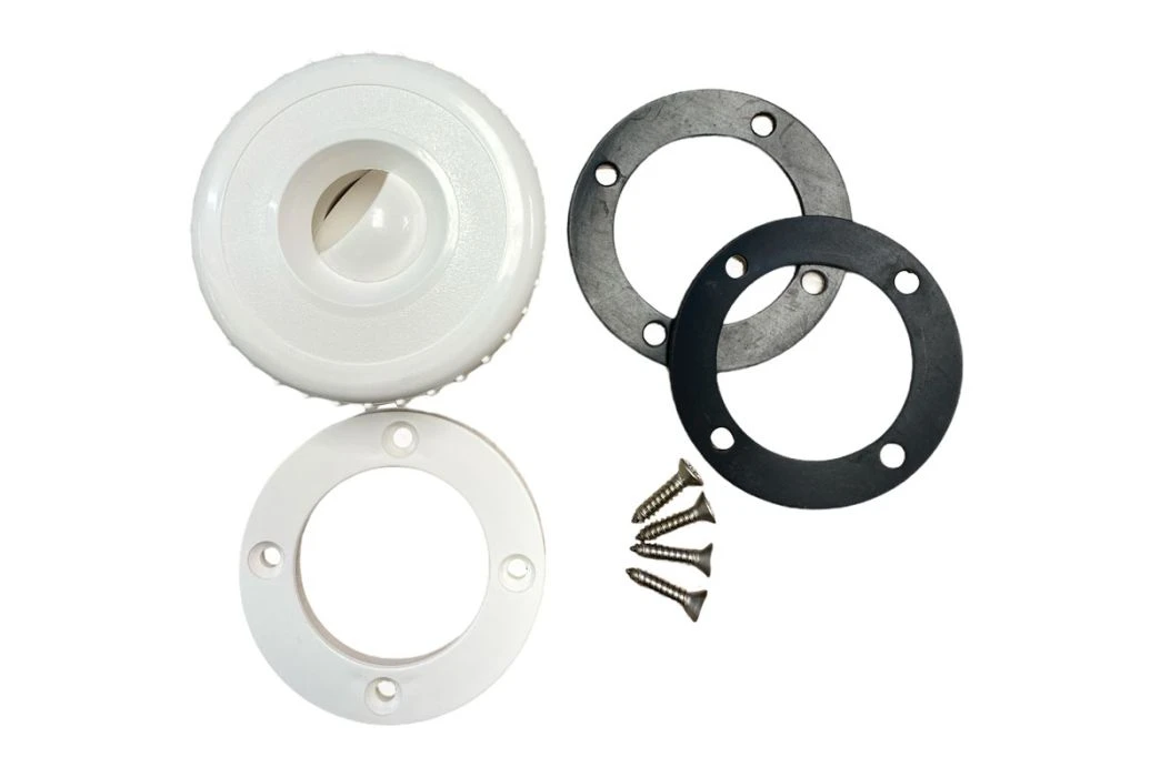 De inspuiter wordt geleverd inclusief een pakkingsset en RVS schroeven t.b.v. de afdichting; ideaal om in te metselen in je zwembadmuur. Ook kun je deze inspuiter gebruiken in een polystyreen zwembad.