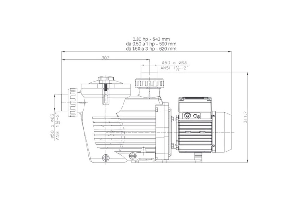 Het plaatsen en installeren van deze zwembadpomp is eenvoudig. Je kunt de 63 mm leidingen aansluiten op het schroefdraad van 2″. Wanneer je zwembad beschikt over leidingen van 38 mm is het mogelijk om dit aan te passen met een koppeling. Standaard zit bij deze zwembadpomp geen stekker. Deze moet er nog wel aangemaakt worden, voordat de pomp aangesloten wordt.